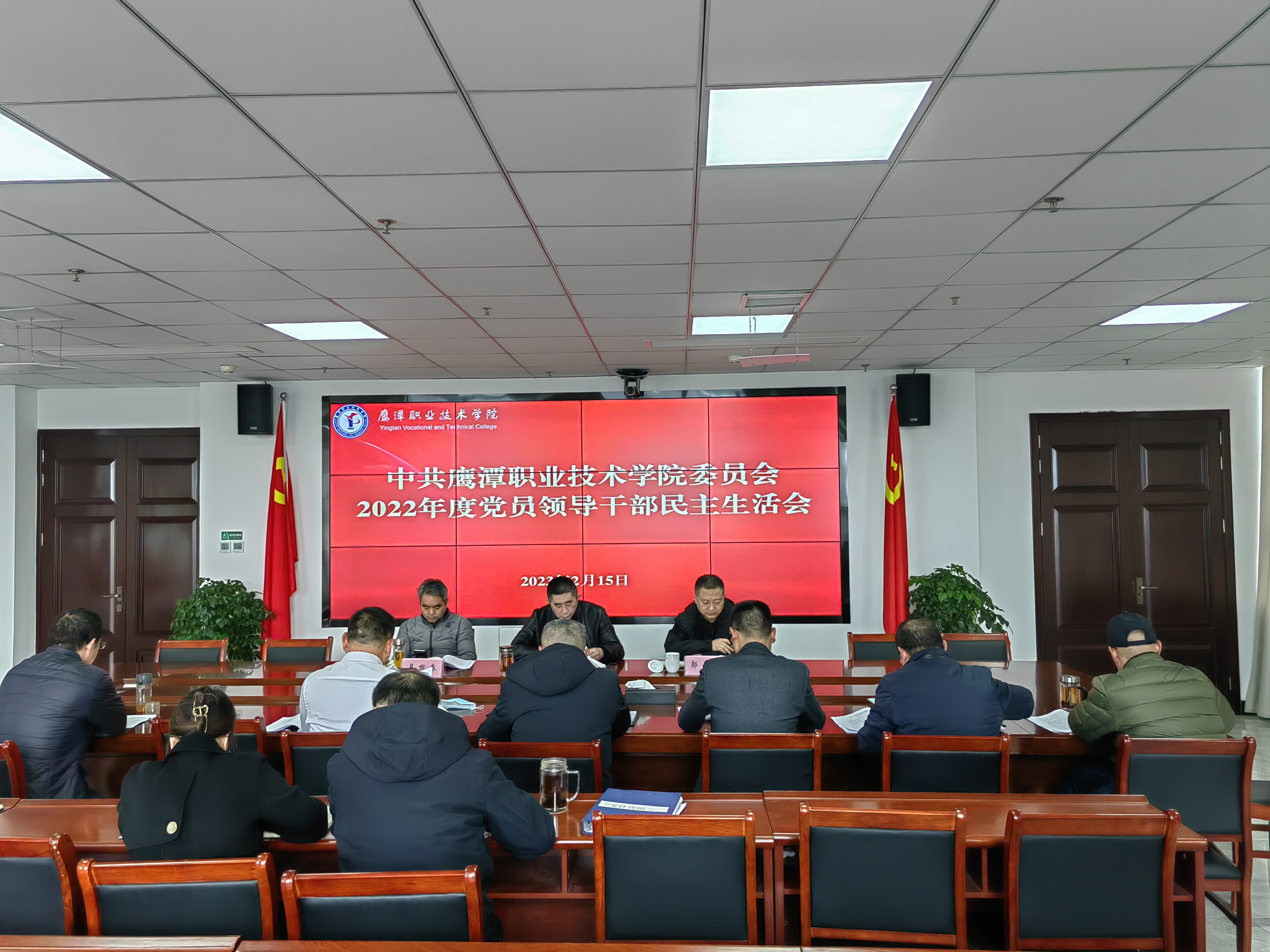 2月15日,鹰潭职业技术学院党委召开2022年度民主生活会,党委书记曾传鸿主持会议,督导组郭强主任全程指导,班子成员全体参会,逐一对照检查。