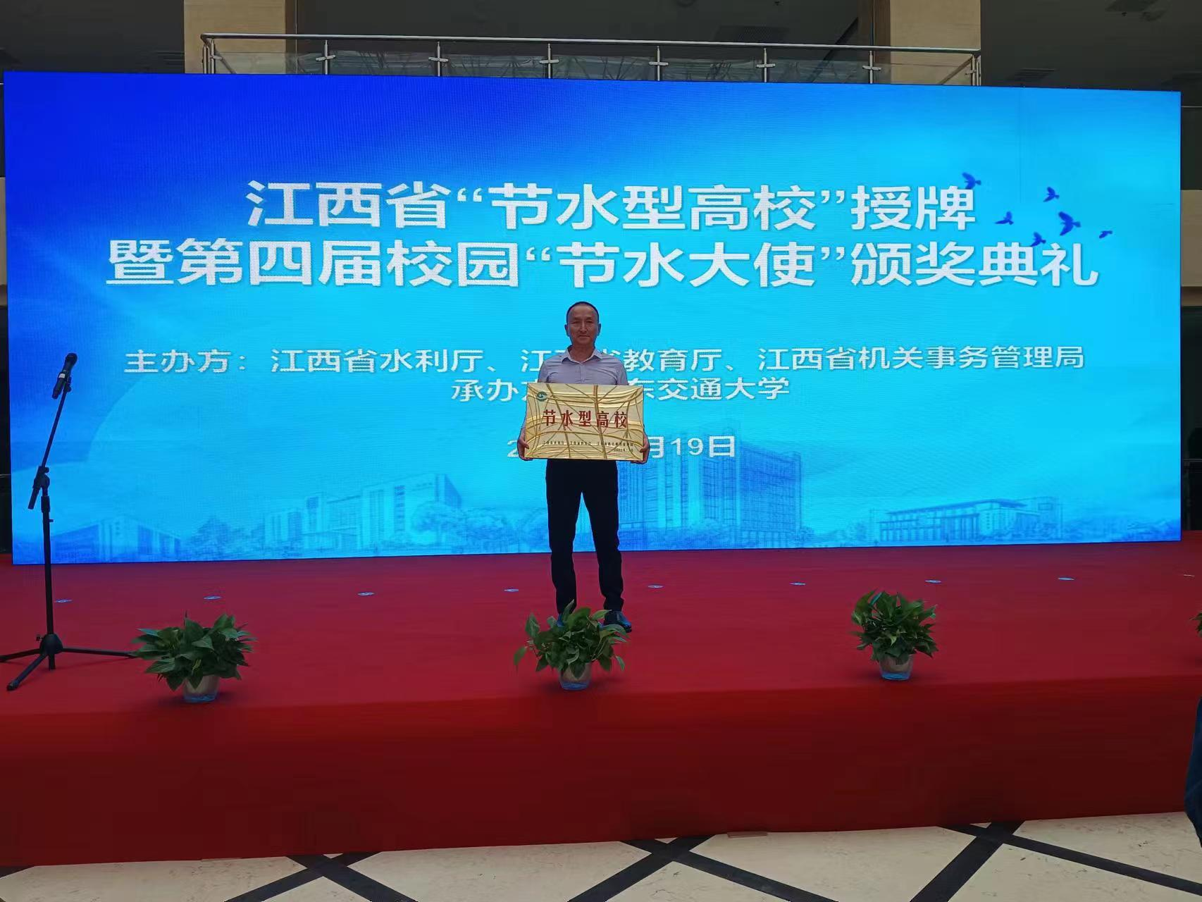 5月19日,由省水利厅、省教育厅和省机关事务管理局联合举办的江西省“节水型高校”授牌暨第四届校园“节水大使”颁奖活动在华东交通大学举行,省政府副省长卢小青,省政府副秘书长、省机关事务管理局党组书记、局长严佛元,省水利厅党委书记、厅长罗传彬,省委教育工委委员、省教育厅副厅长汪立夏,华东交通大学校党委书记柳和生出席此次活动,我校受邀参加授牌仪式和颁奖活动,后勤产业处黄建新处长代表我校参加授牌仪式。