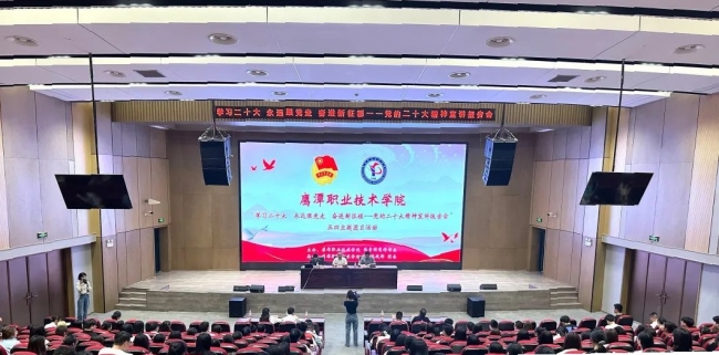 5月4日下午,我校与共青团鹰潭市委在学术报告厅联合举办“学习二十大 永远跟党走 奋进新征程”校园宣讲报告会,党的二十大代表、“全国优秀共产党员”、贵溪法院党组成员、泗沥法庭庭长周淑琴受邀主讲。报告会由校党委书记曾传鸿主持。共青团鹰潭市委书记刘辉斌、副书记刘建、罗琦,学校领导班子成员,师生代表共计300余人参加。