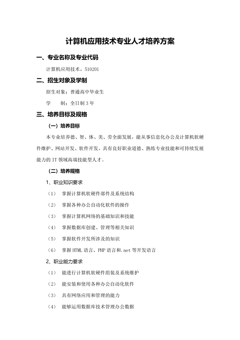 计算机应用技术专业人才培养方案