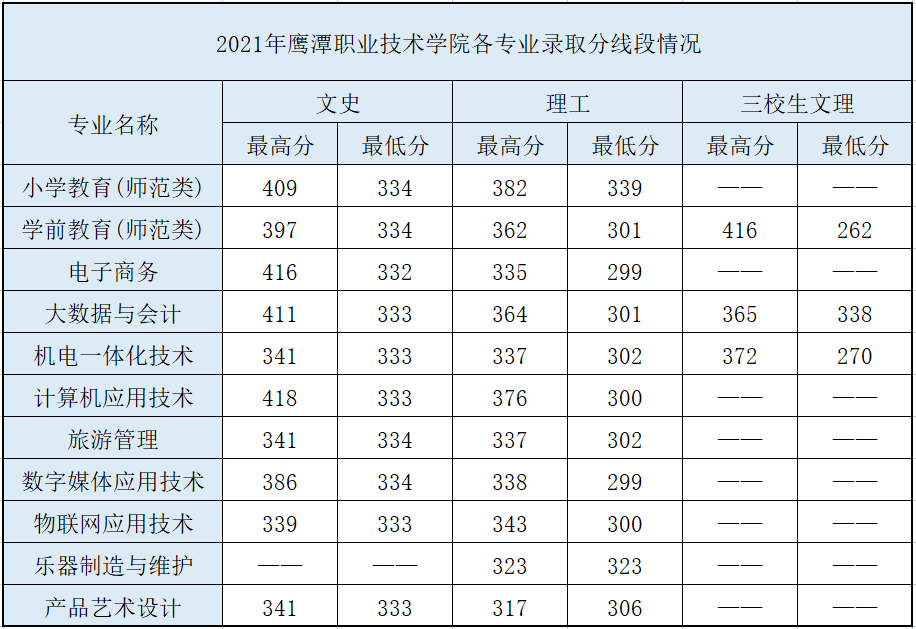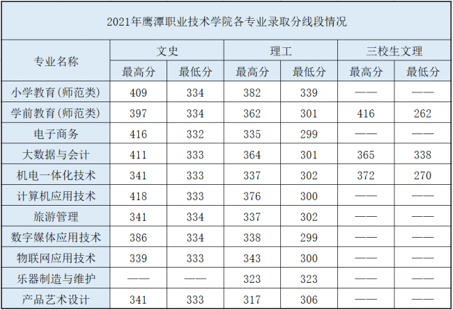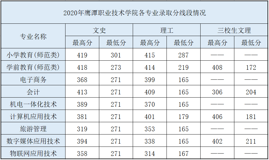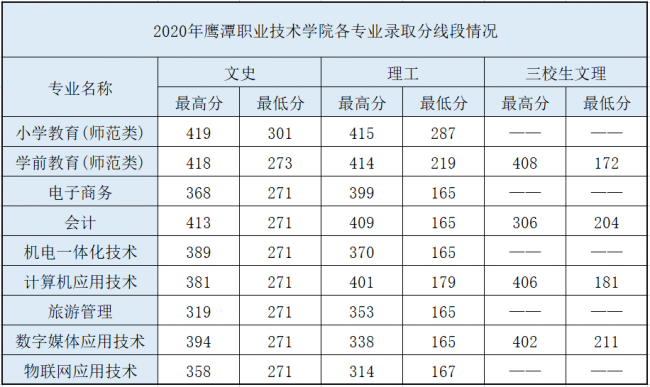 鹰潭职业技术学院历年分数线汇总