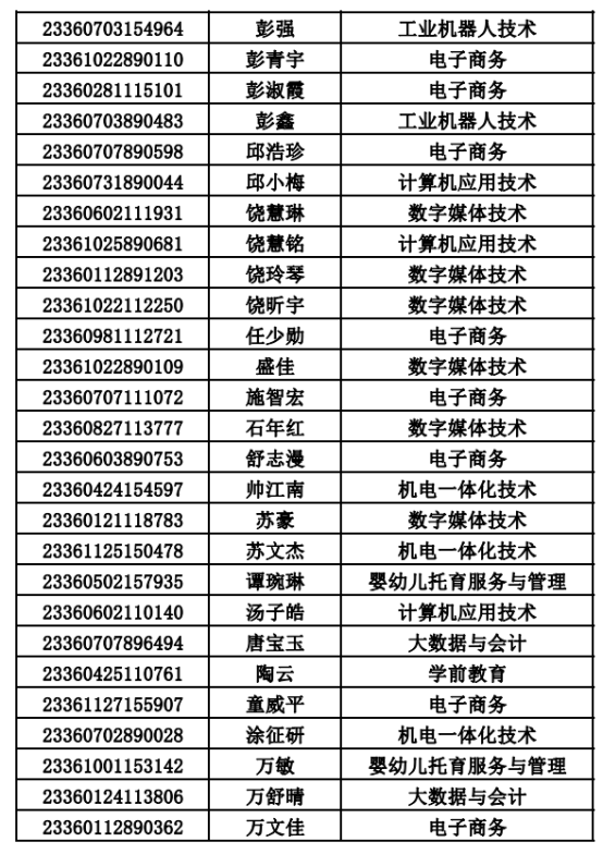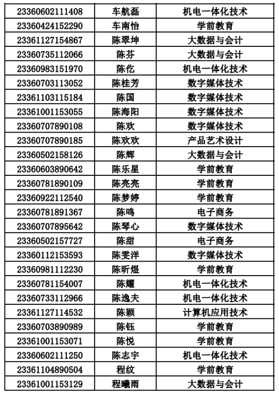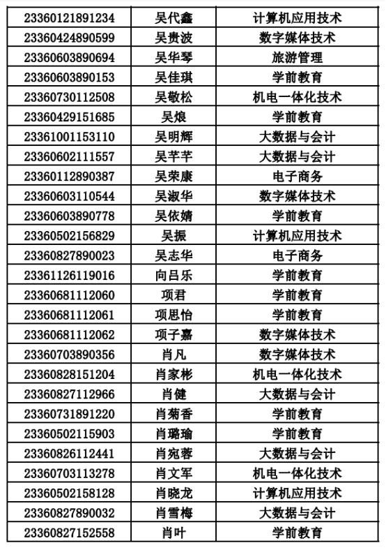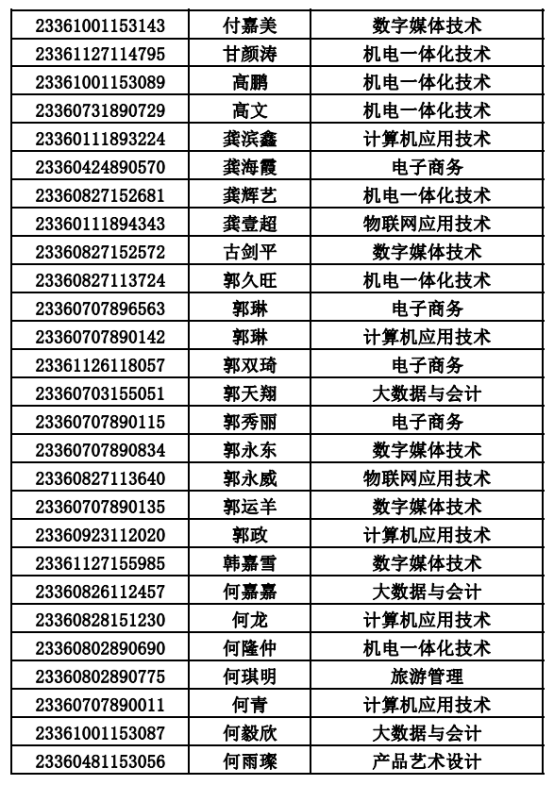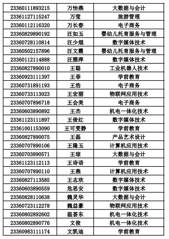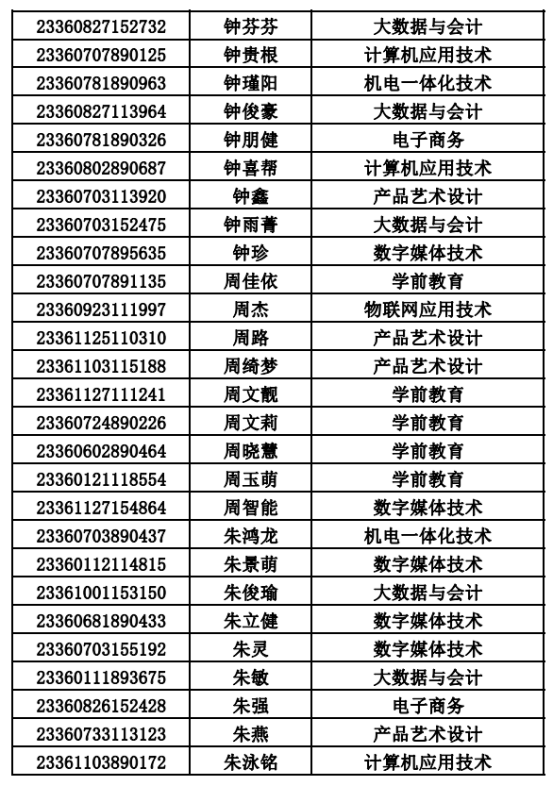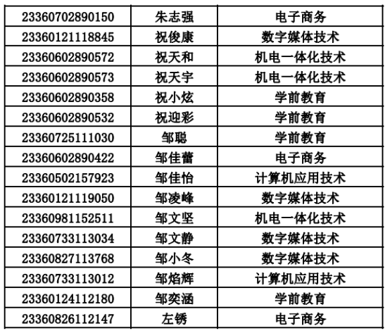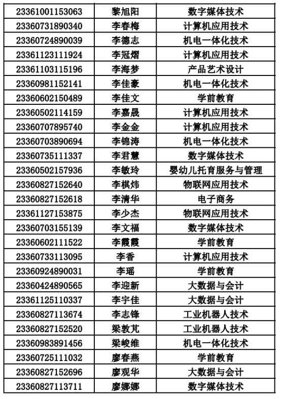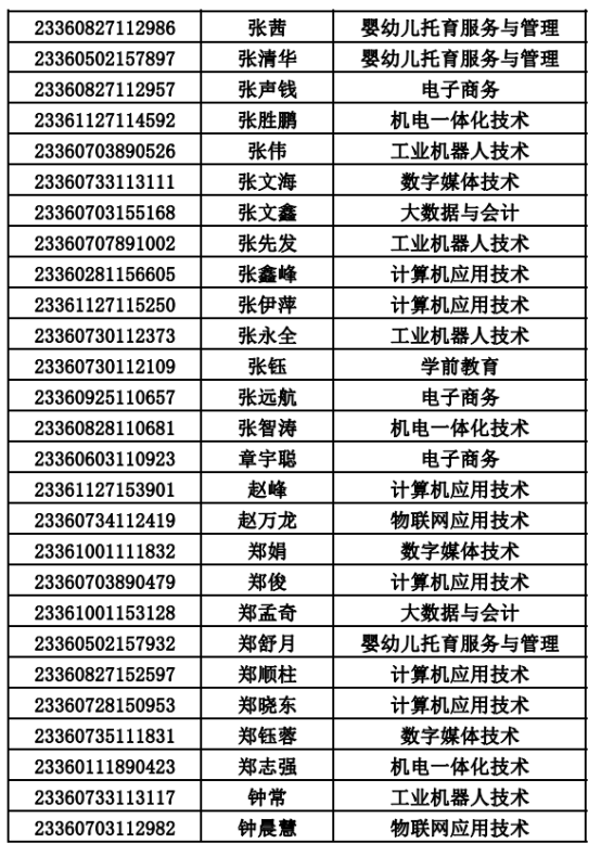 2023年单招录取已经结束,录取通知书将于4月20日之前统一寄出,现将录取名单公布。名单以姓名首字母(a-z)排序: