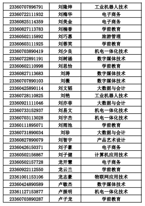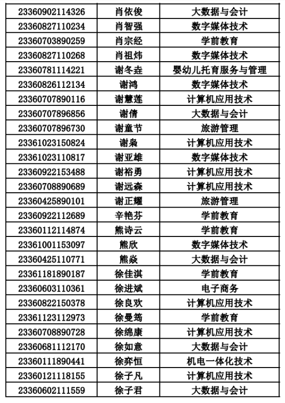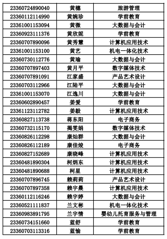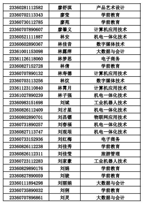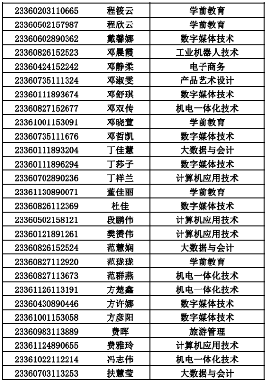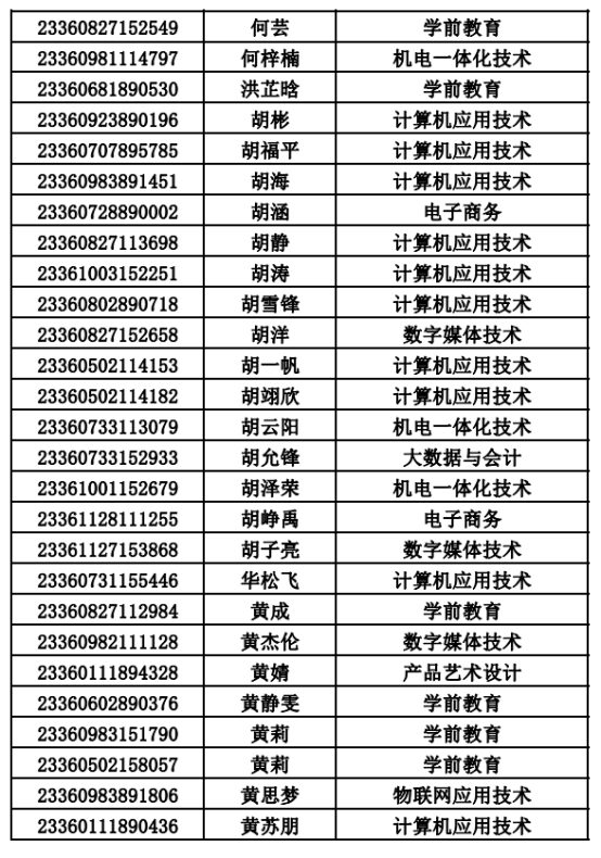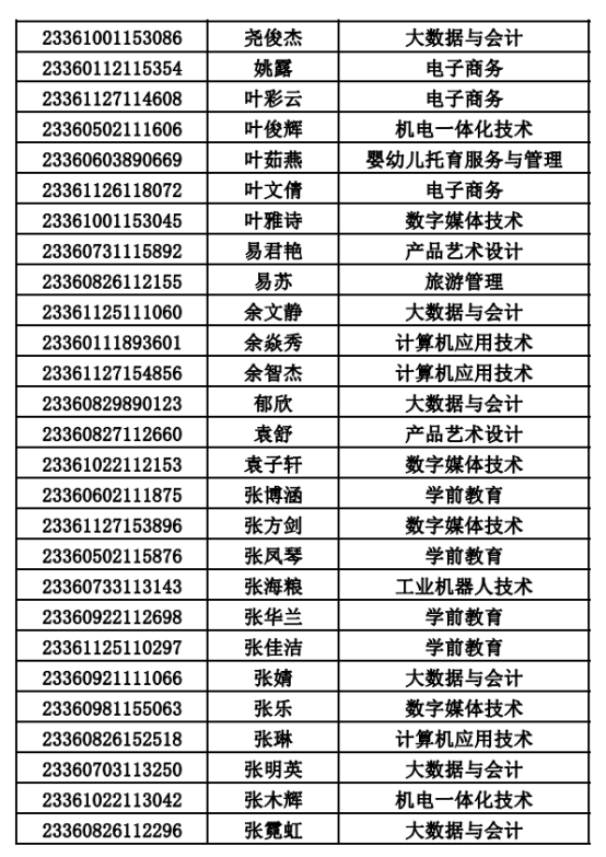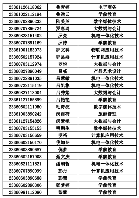 2023年单招录取已经结束,录取通知书将于4月20日之前统一寄出,现将录取名单公布。名单以姓名首字母(a-z)排序:
