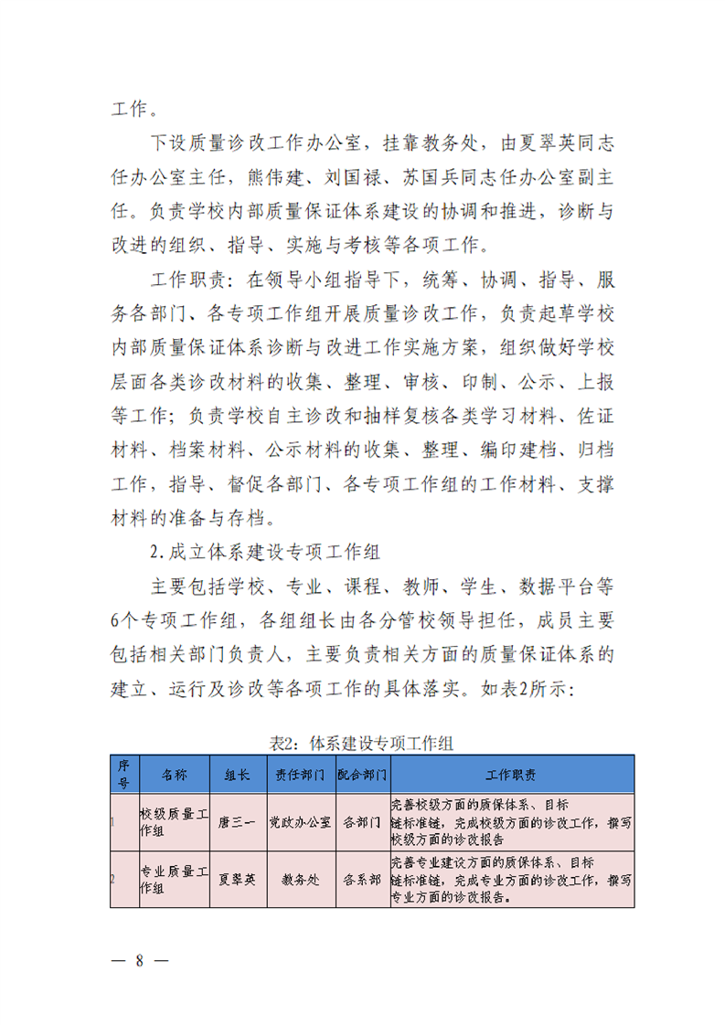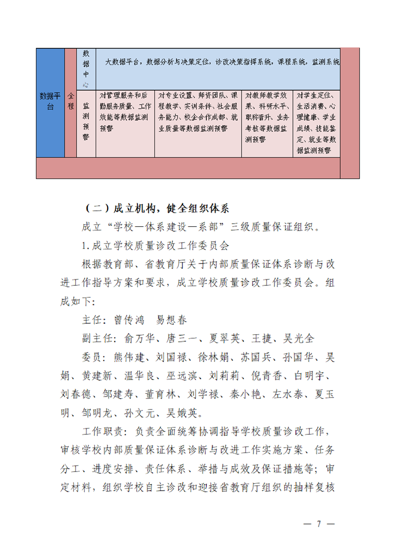 关于印发《鹰潭职业技术学院内部质量保证体系诊断与改进工作实施方案》的通知